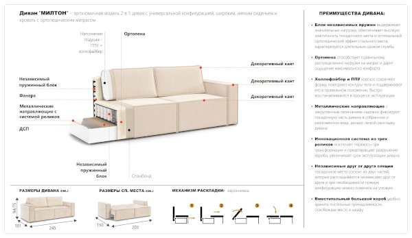 Диван Милтон (Империал) - за 60 776 руб. в Волгограде. Купите на сайте mebelmarket-volgograd.ru или по телефону 8(800)505-30-63 уже сегодня! Уточнить наличие, комплектацию, актуальную цену можно бесплатно у менеджера ежедневно. Закажите Диван Милтон (Империал) до конца акции! Доступна покупка в кредит, рассрочку. Доставим со склада или на заказ.