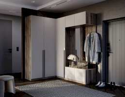 Угловой шкаф «Урбан» состоит из отделения с хромированной штангой для плечиков, а также верхние и нижние ниши.