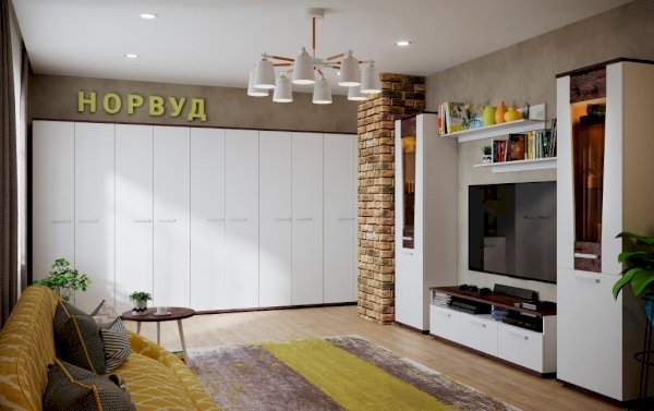 Норвуд 3 Тумба ТВ в белом минималистичном дизайне гармонично дополнит любую современную гостиную. Яркий акцент тумбы - контрастные верх и низ толщиной 22 мм в декоре Орех шоколадный. Три выдвижных ящика на шариковых направляющих плавно и бесшумно открываются за светлые ручки из массива дерева. Утопленная вглубь перегородка открытой ниши создает ощущение легкости и воздушности. На невысокой тумбе можно разместить телевизор диагональю до 65''.