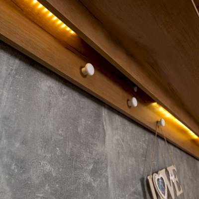 Навесные шкафы-мосты с функцией ночника привлекательны для детей и для поклонников оригинальных решений. Включается и выключается диодная подсветка ночника при помощи маленького аккуратного выключателя. Также Шкаф навесной - очень практичное решение, он позволяет рационально использовать пространство над кроватью, объединяя в себе ниши, полочки и шкафчики за глухими фасадами. Белые ручки на пристенной панели играют роль крючков-гвоздиков для возможности декорирования зоны отдыха ребенка. Обращаем ваше внимание на то, что 81 Шкаф навесной обязательно крепится к стене на уголки и должен быть установлен и дополнительно закреплен между двумя высокими шкафами. Самостоятельное его размещение на стене не рекомендуется!